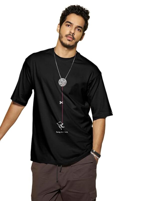 Bewakoof Men’s Graphic Print Oversized Fit Half Sleeve Round Neck Cotton T-Shirt