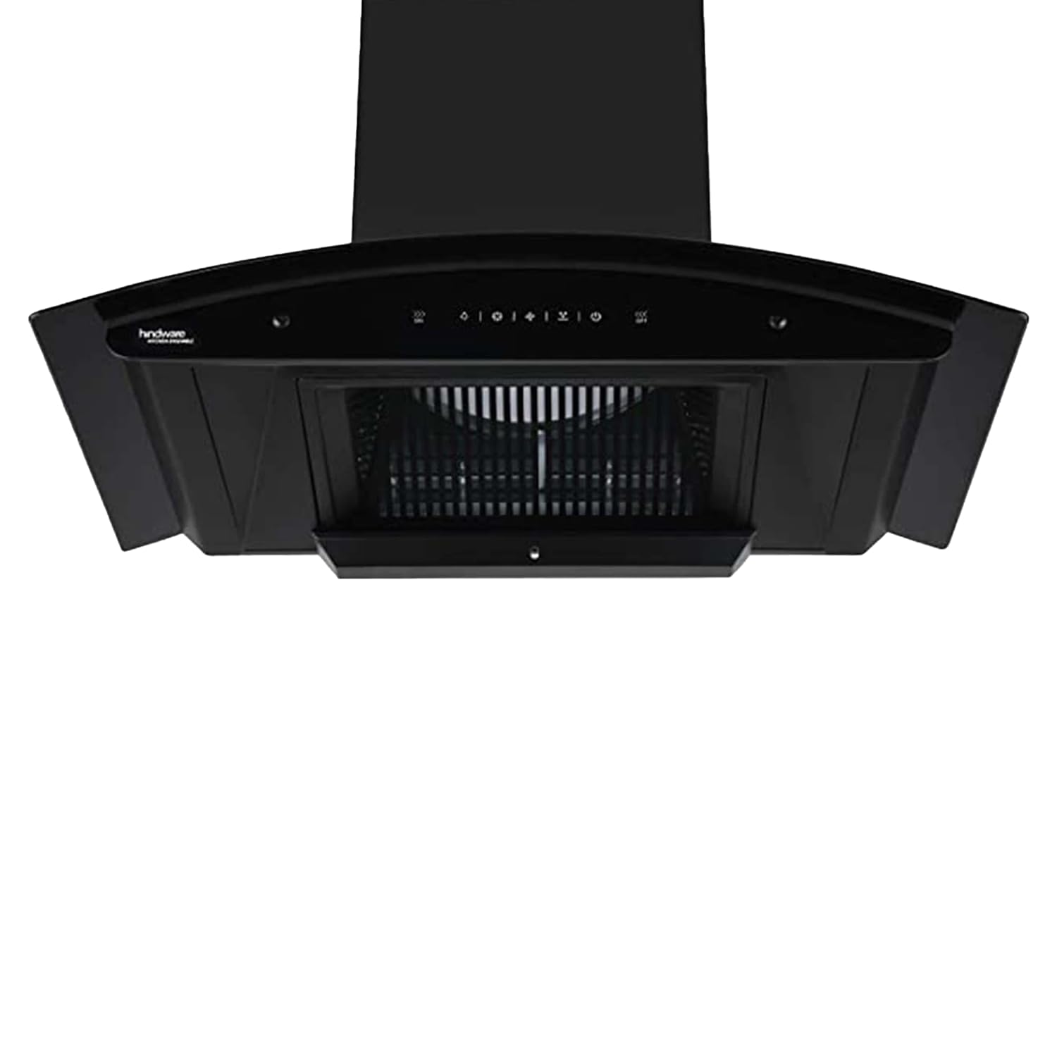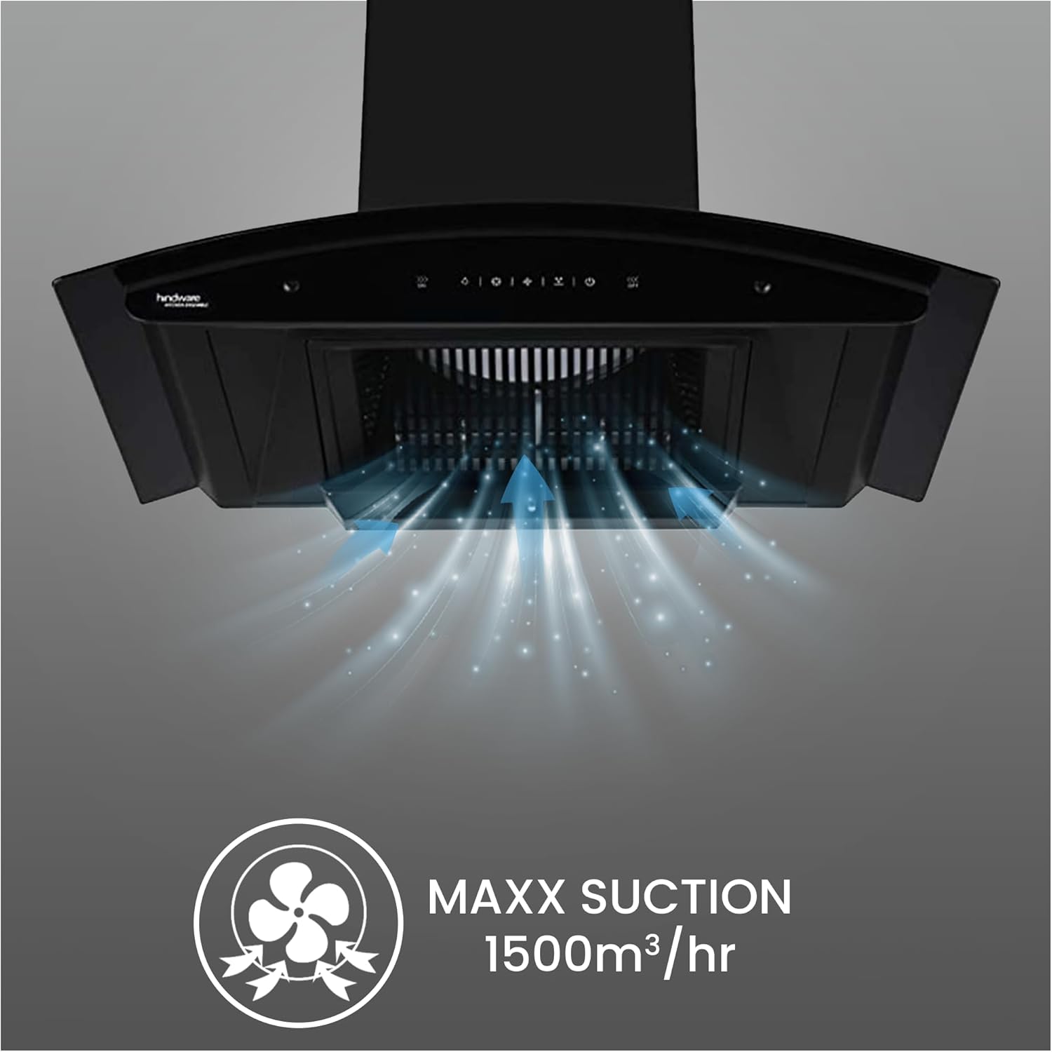 - Suction Capacity: A wall mounted chimney for kitchen with powerful motor that provides 1500 m3/hr suction capacity, suitable for heavy frying