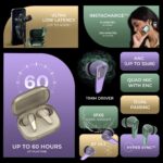 Up to 60 hours of playtime – Get your playlists queued and ready because these earbuds bring you incredible playtime.