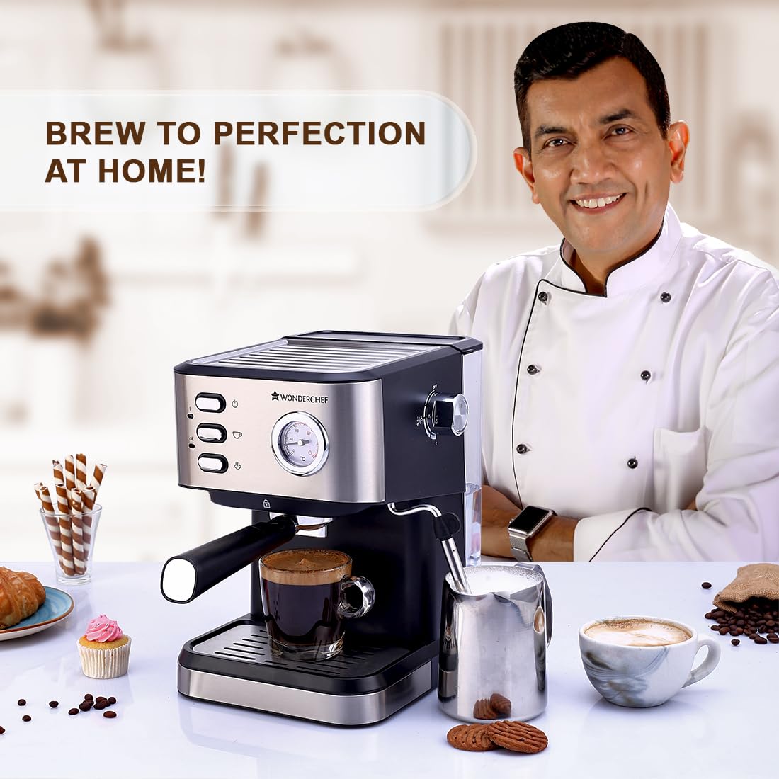 Wonderchef Regenta Espresso Coffee Machine, 19-bar, Make Espressos, Cappuccinos & Lattes at Home, With Steamer, Metal Porta Filter, Temperature Dial, 2 Year Warranty