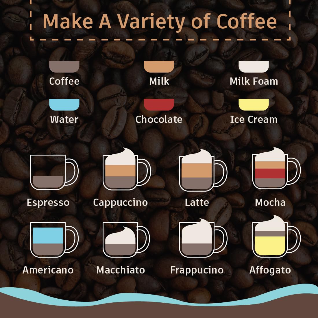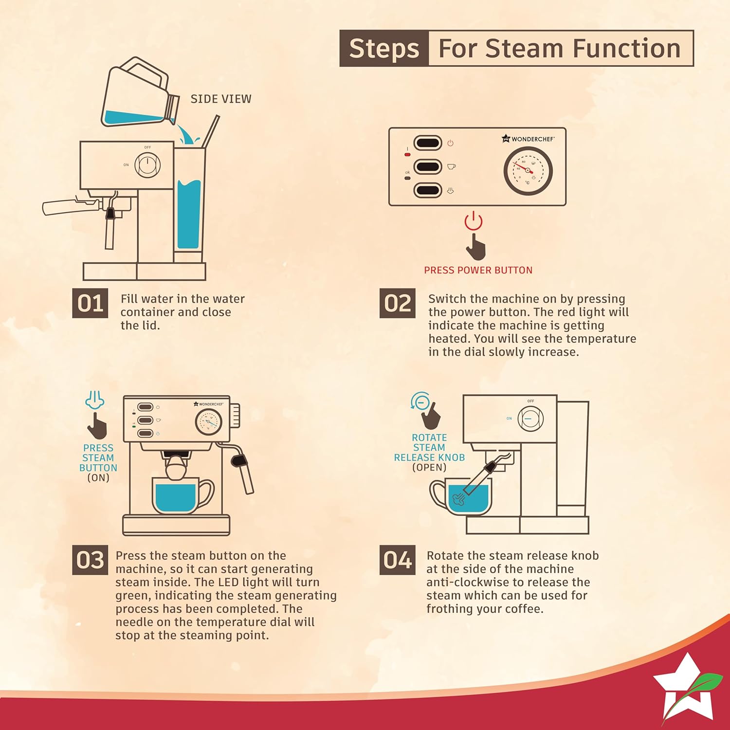 • Frother: The specially designed steam tube adds froth to your beverages, making every cup enjoyable and adding a touch of creativity to your coffee.